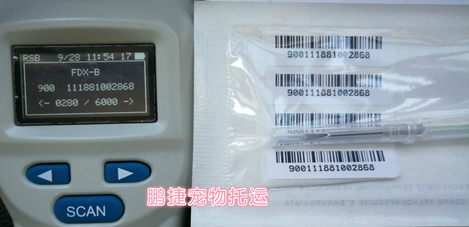 3、用芯片扫码仪扫描核对芯片号码是否正确。